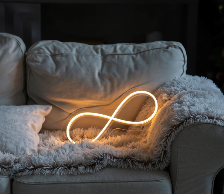 Neoninis ženklas „Infinity“ – elegantiškas ir nesenstantis LED dizainas, simbolizuojantis begalinę meilę, stiprybę ir galimybes. Su savo lygiomis, tekančiomis linijomis šis neoninis sienų paveikslas suteikia elegancijos ir gylio bet kokiam interjerui. Puikiai tinka miegamiesiems, svetainėms, vestuvėms, studijoms arba kaip prasminga dovana. Energiją taupantis, patvarus ir gražiai minimalistinis – žėrintis priminimas, kad kai kurie dalykai tarnauja amžinai.
